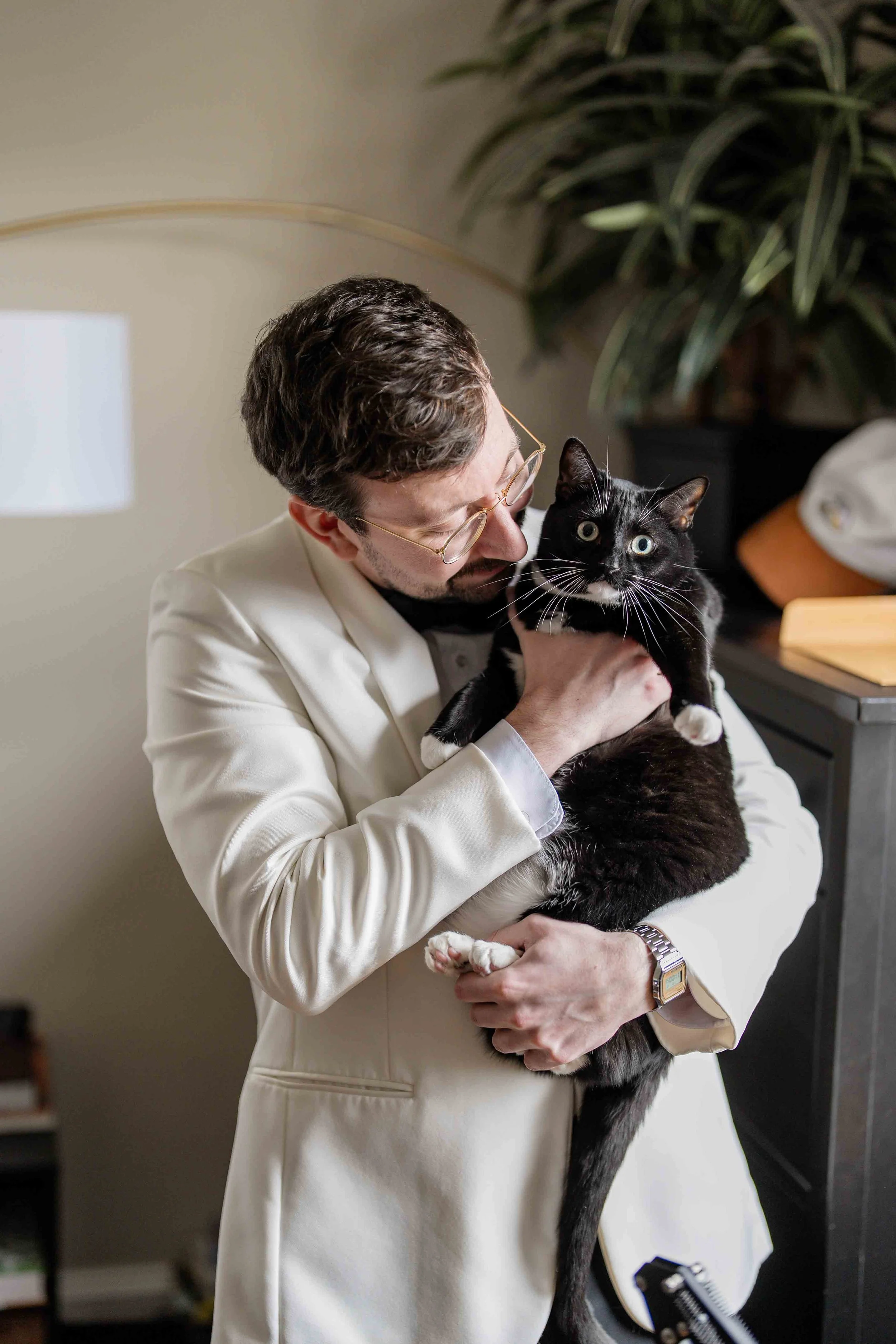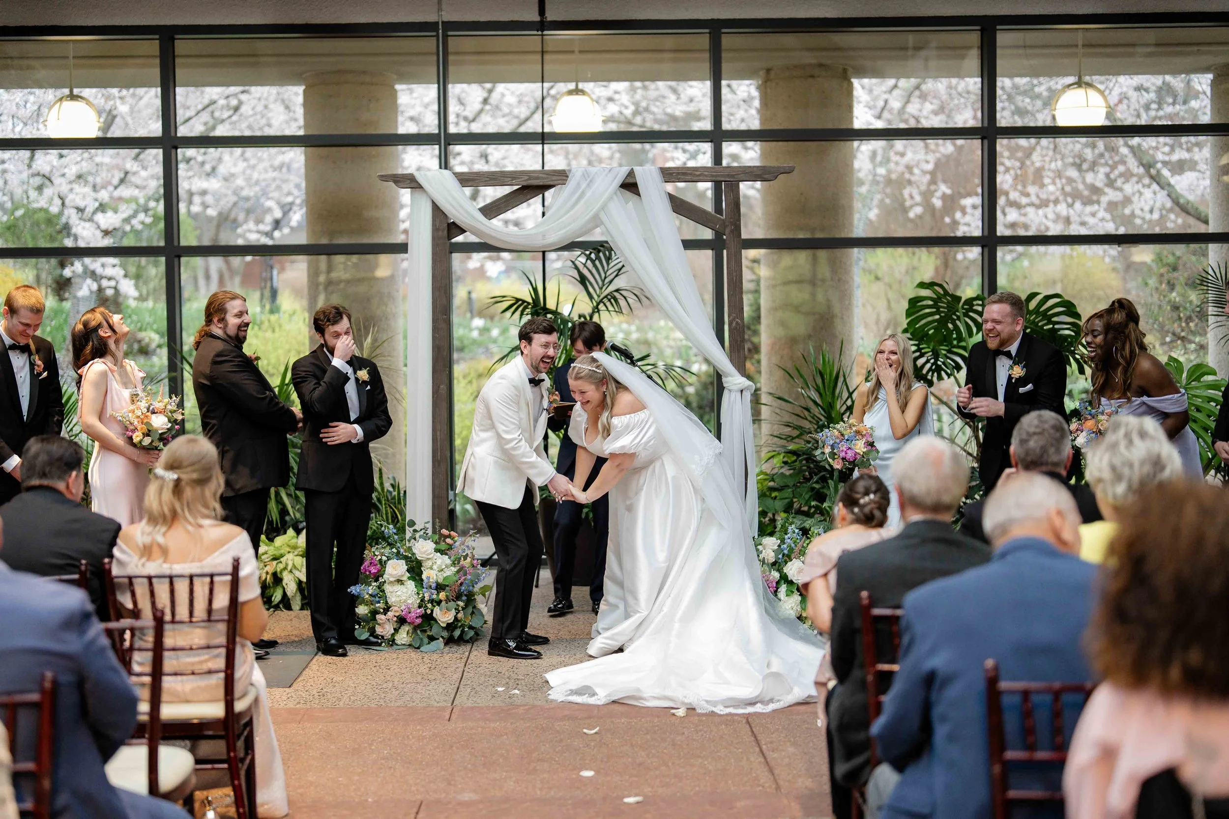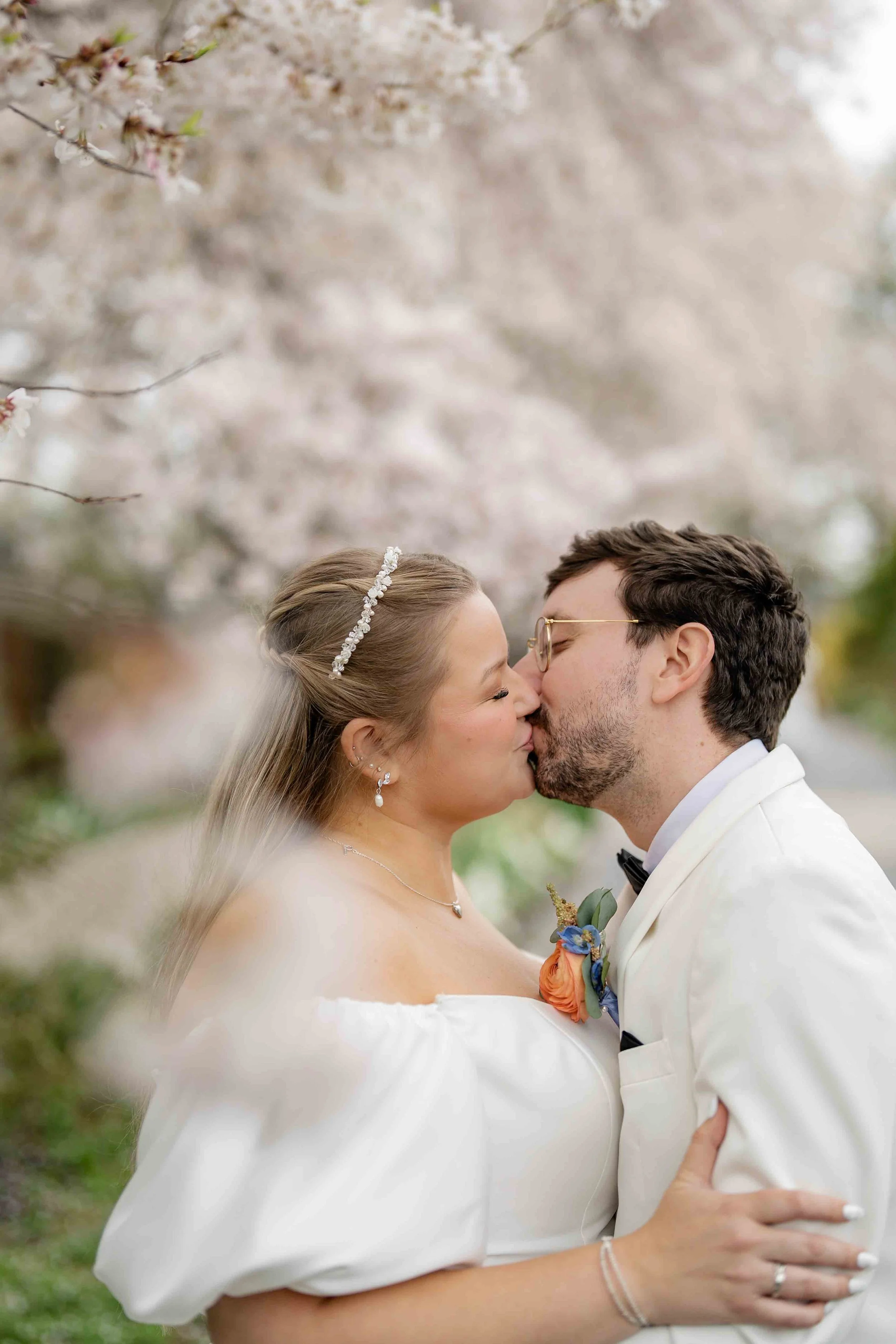 How lucky is this couple that their wedding happened to line up with peak cherry blossoms blooming in DC and at Meadowlark Gardens!! They are so deserving. Friday March 27th was our longest wedding gig yet..but never a dull moment from morning to midnight. Jacob (groom) even celebrated his 30th birthday after the wedding reception! It was such a fun day with an awesome group of people. From Jacob’s cute cat in his apartment, to Katie and Jacob’s heartfelt hand-written vows during the ceremony, to cherry blossom petals flying in the air, an enormous cookie exchange table, and many happy tears..we were lucky to be a part of this day.