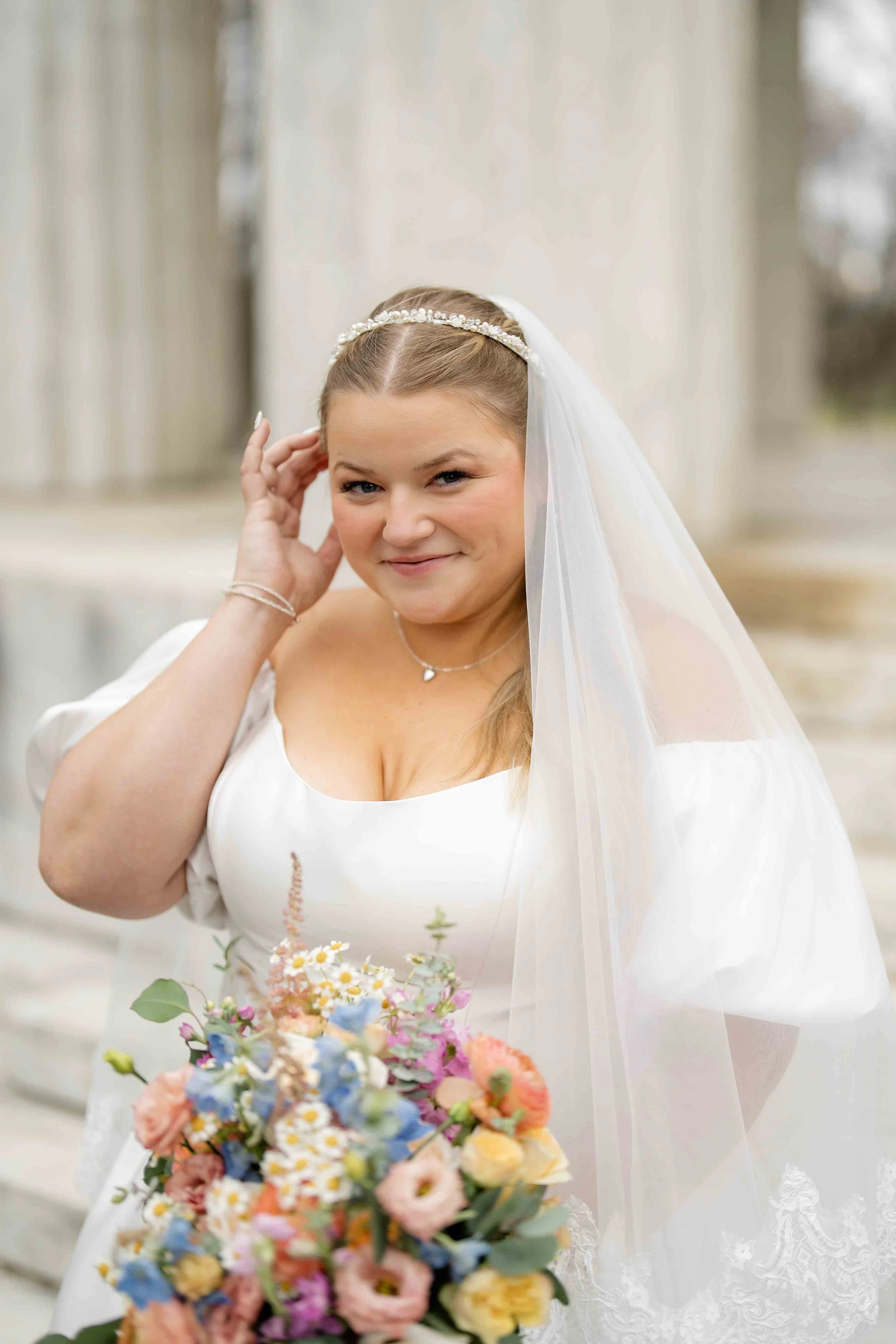 This was the windiest wedding we’ve done in our ten years of work. It was a LOT on everyone, but just look at the dramatic veil portraits we got from it! They are some of our favorite shots from the day.